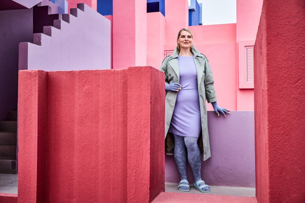 Nicole zeigt, wie es geht: Mit einem farbenfrohen Akzent in den Schuhen lenkt sie geschickt von ihrem Lymphödem am Arm ab und schafft gleichzeitig einen modischen Hingucker. Farbakzente und gezielte Highlights sind ideale Mittel, um den Blick dorthin zu lenken, wo Sie ihn haben möchten.